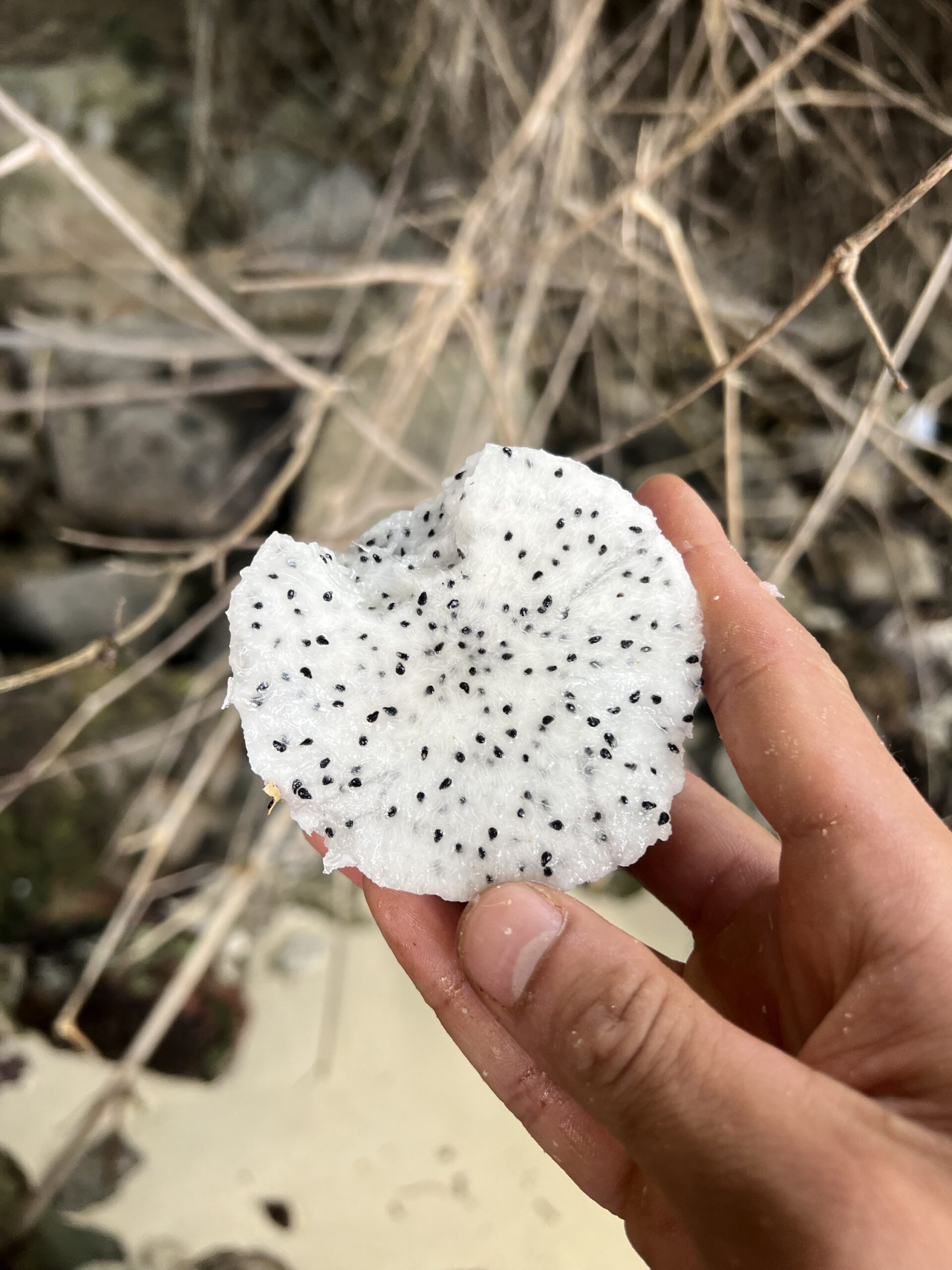 Dragon fruit (Pitahaya) grows on the Hylocereus cactus whose flowers only open at night and is native to southern Mexico and Central America. Its taste has been described as a slightly sweet cross between a kiwi and a pear.